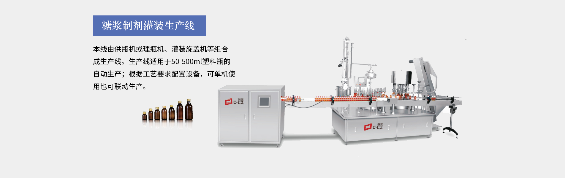 糖漿灌裝生產(chǎn)線適合30ML以上口服液的灌裝生產(chǎn),由供瓶機、直線式灌裝軋(旋)蓋機、立式貼標機等設(shè)備組成,可全自動完成灌裝、上蓋、旋(軋)蓋、貼標等工序。主要用于制藥、食品、化工的的各種液體物料的灌裝聯(lián)動生產(chǎn)。本生產(chǎn)線完全符合GMP要求。糖漿灌裝生產(chǎn)線特點裝量特征:無滴漏、不起泡、不飛濺。運行特征:運行穩(wěn)定,噪音小;灌裝精確,能耗少,破瓶率低,成品合格率高性能特征:整條生產(chǎn)線可單機控制和聯(lián)鎖控制。洗瓶...